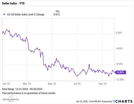 Source: Instrumental Wealth, YCharts. Dollar Index YTD: -9.87%
