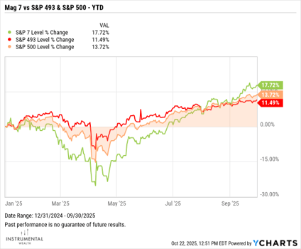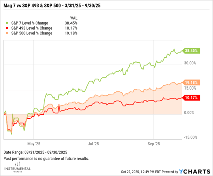 Source: Instrumental Wealth, YCharts. The MAG7 surge from Q1 lows through Q3