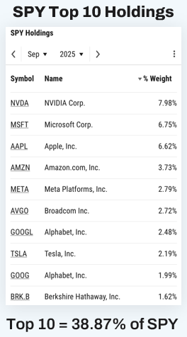 Source: Morningstar Direct. Top 10 holdings = 38.87% of SPY