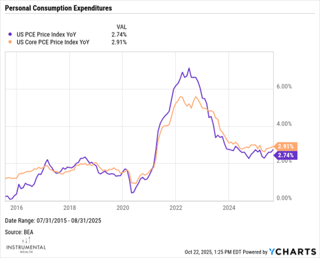 - PCE: Up from 2.3% in April to 2.7% (through August)