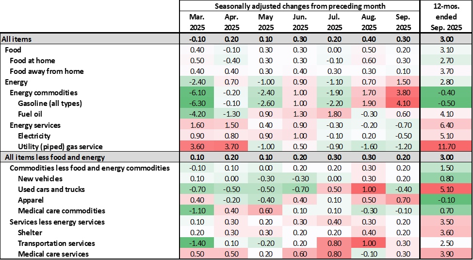 Source: Bureau of Labor Statistics. September 2025 CPI breakdown by category