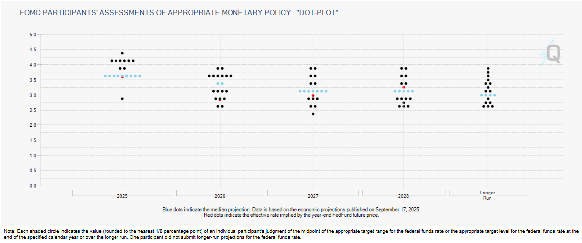 - Long-term projection: Fed members expect rates around 3.5%-3.75% through 2025